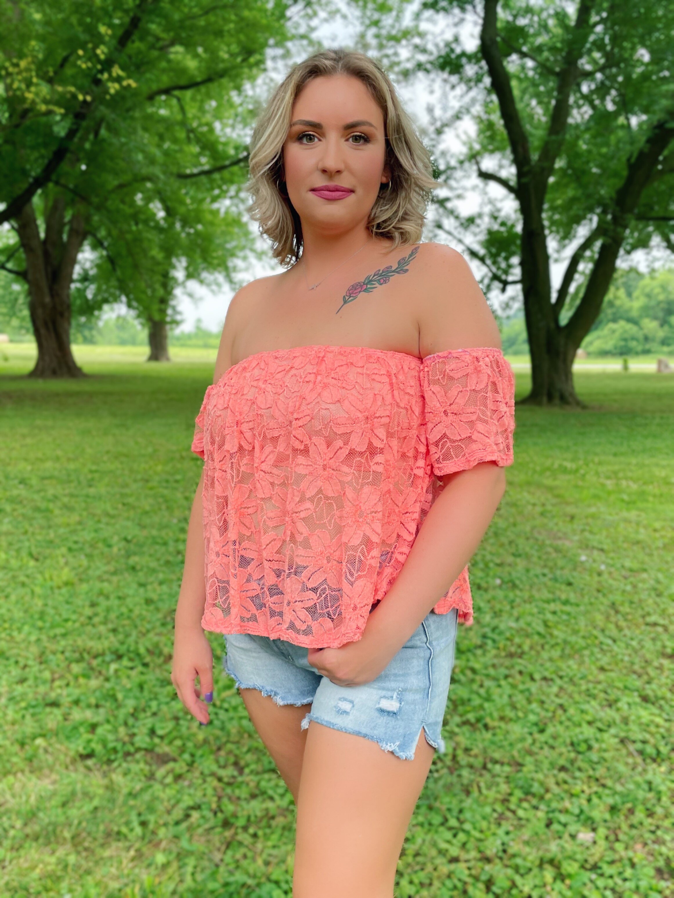Shop › Coral off shoulder lace top Image 1 of 4 Image 2 of 4 Image 3 of 4 Image 4 of 4 Coral off shoulder lace top Sale Price: $5.00 Original Price: $18.99 Coral partially lined off the shoulder lace top. Models in Small and Medium. 65%COTTON,35%POLYESTER. Size: Small Medium Large Get notified by email when this item is back in stock! <p class="">Subscribe to our newsletter to stay up to date on our new arrivals and sales!</p> Add To Cart Added! Coral partially lined off the shoulder lace top. Models in Small and Medium. 65%COTTON,35%POLYESTER. Reviews Reviewer Name Review Date Star Rating Description Posted on Etsy Product Show More You Might Also Like Quick View 'Morgan Wallen: One Thing At A Time" Tee in Acid Black from $38.00 Quick View Pin You Down KanCan Jeans $81.99 Quick View Born In The USA Bodysuit (MULTIPLE COLORS) Sale Price: $15.00 Original Price: $28.99 Sale Quick View Wash It All Away Kan Can Shorts $59.99 Quick View Earned The Promotion Skirt in Black $60.00